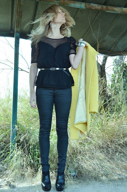 hoy he salido de casa con lo que he decidido llamar un reciclaje supersticioso, porqué? He sacado del fondo del armario un abrigo amarillo al que ya se puede mencionar como vintage, pues tiene mas de 10 años, combinado con un total black look H&M. He querido rescatarlo para hacer honor a la llegada de la colorida primavera que viene. Bisous